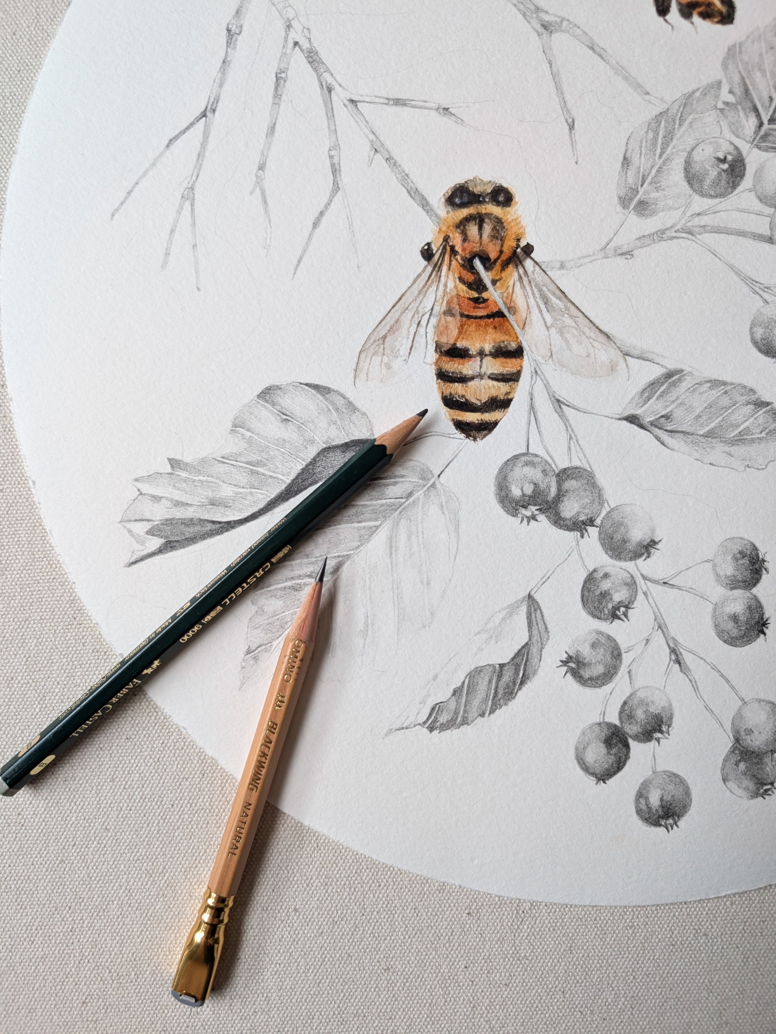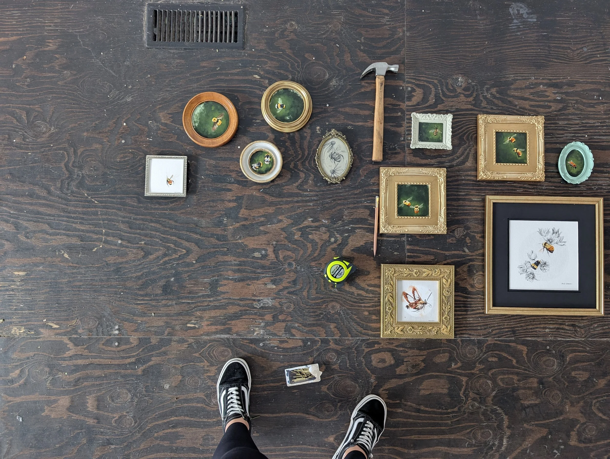 This body of work was created for and shown at a group exhibition show in June of 2025. 'Golden Reveries' was about looking closer at the small but significant creatures that help create beauty and food for the planet. Often overlooked and under appreciated, pollinators are a diverse and extremely important part of our ecosystem.